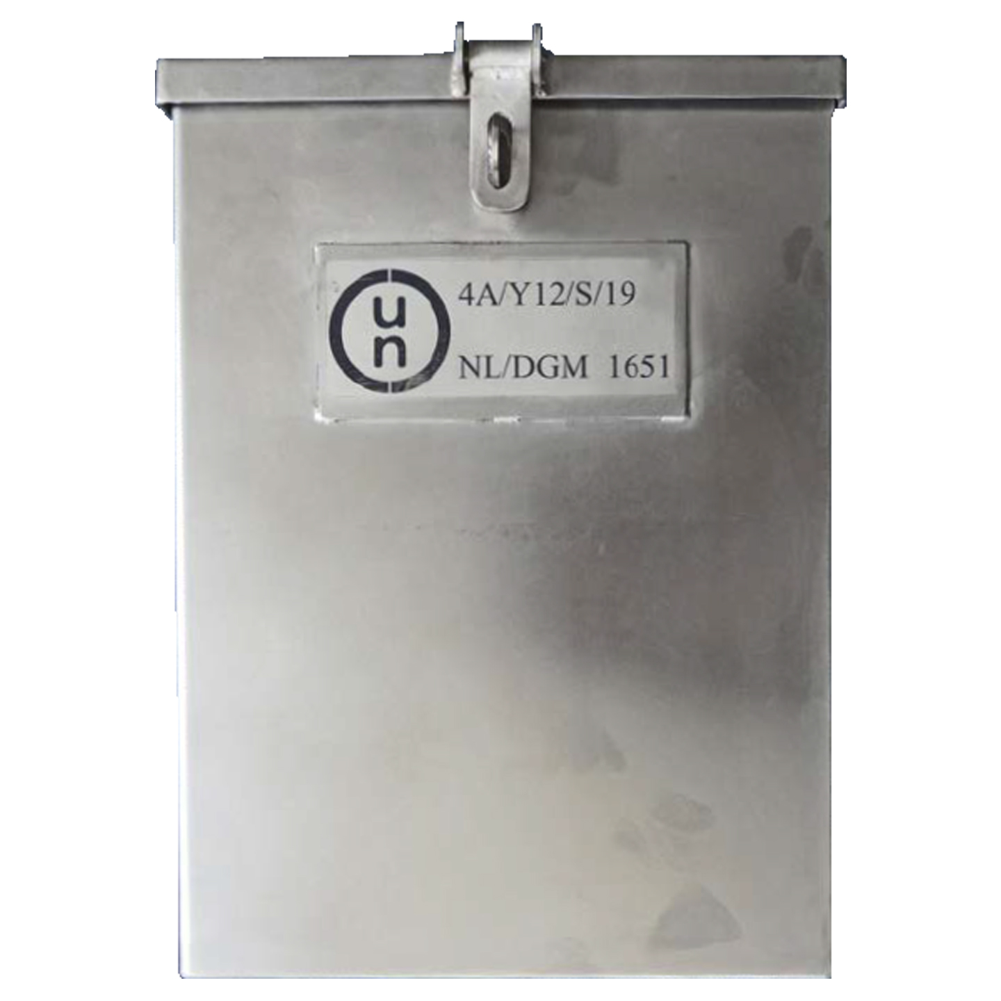 The container is packed in the especially designed (and tested) UN 4A stainless steel outer box.